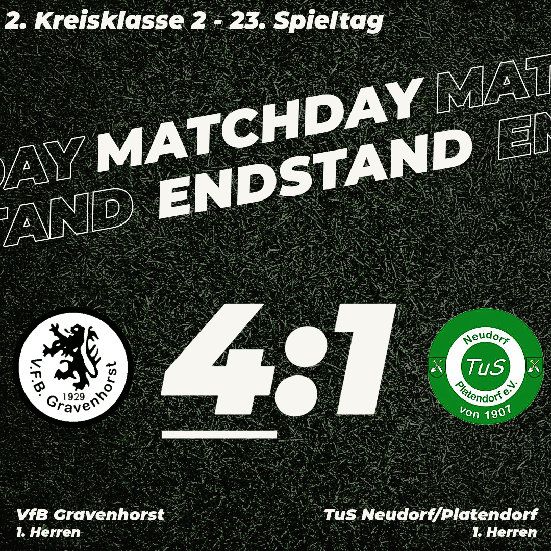 Weiterlesen ➜: 23. Spieltag 24/25Unser VfB Gravenhorst hatte letzten Sonntag (18.05.) im Heimspiel gegen den TuS Neudorf/Platendorf eine starke Leistung gezeigt und verdient mit 4:1 gewonnen! 💪 Es ging gleich furios los: Schon in der 3. Minute konnten wir das erste Tor bejubeln und mit 1:0 in Führung gehen. Nach dem Ausgleich kurz vor der Pause ließ sich unser…